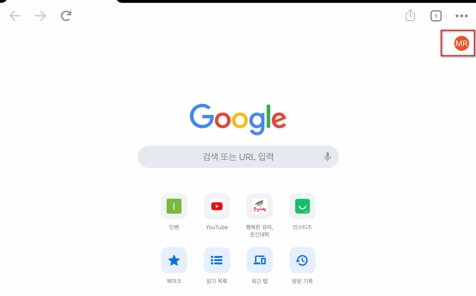1) 크롬에서 좌측 상단의 프로필 명을 클릭한다.